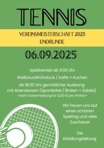 Kommt vorbei, feuert die Spieler an und genießt mit uns einen tollen Tennistag!
