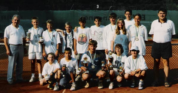 Mit Fabian Reisch (stehend, Zweiter von links) gab es beim Tennis-Jugendturnier des TSV Petersaurach in der Altersklasse Bambinis erfreulicherweise einen Herrieder Sieger. Im umkämpften Finale setzte er sich mit 7:5/6:1 gegen Titelverteidiger Tobias Metzmacher (ESV Treuchtlingen) durch und holte damit den Turniersieg nach Herrieden.