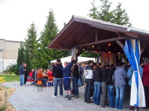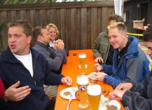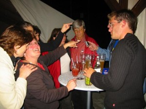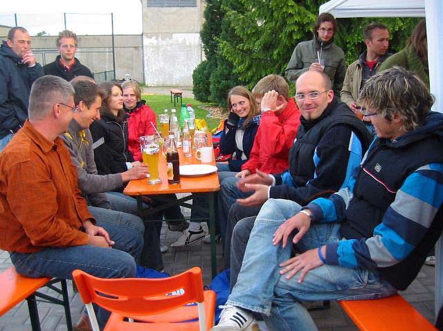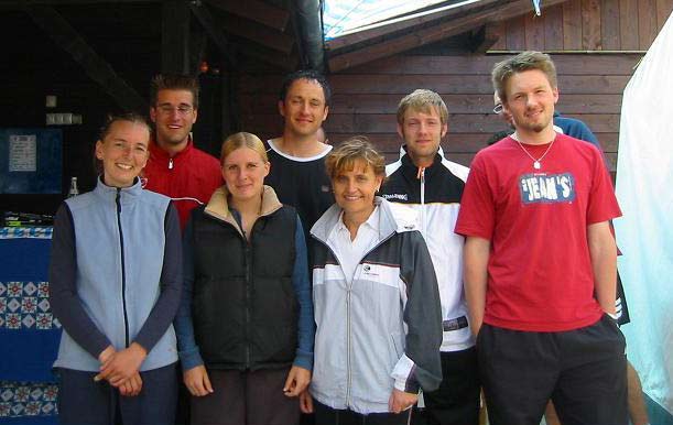 Obwohl die SG als Titelverteidiger beim traditionellen und beliebten Turnier um den „Bechhöfer Pinsel“ heuer gerade noch ein Team auf die Beine stellen konnte – aufgrund der Damennot spielten Philip Maurer, Fabian Reisch, Patrick Schumann und Christian Treffer mit den sympathischen Damen des SV Arberg – wurde der Pfingstsonntag wieder zu einem schönen Tag in der „Pinselstadt“ Bechhofen. In der Vorrunde erwischte man die stärkere der beiden Gruppen und spielte nach zwei 1:2-Niederlagen gegen die späteren Finalisten TuS Feuchtwangen und TC Roth bei Nürnberg sowie einem 3:0-Sieg gegen TA SV Wört um die Plätze fünf bis acht. Mit zwei 3:0-Siegen gegen Gastgeber TSV Bechhofen und TTC Bruckberg erreichte die „Spielgemeinschaft“ Herrieden-Arberg schließlich den fünften Rang. Sieger wurde der TC Roth bei Nürnberg mit den Ansbachern Thomas Lang und Sonja Steinhäuser sowie dem Rothenburger Steffen Schmidt. Im Anschluss an die Siegerehrung wurde wieder bis in die Nacht hinein gefeiert, was beim Pinselturnier immer den schönsten Teil des Tages einnimmt. Klar, dass die Herrieder Herren auch heuer wieder bis zuletzt mit dabei waren.
