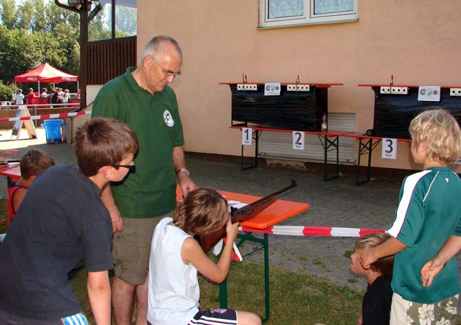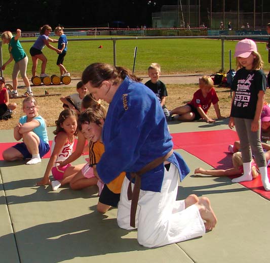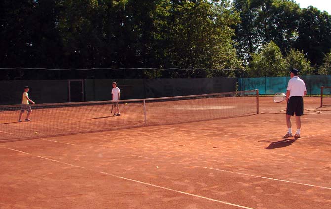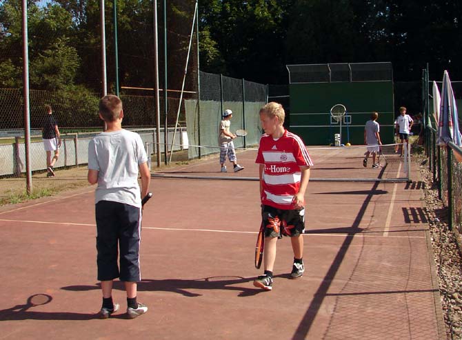 Beim Aktionstag in Herrieden war natürlich auch die Tennisabteilung der SG Herrieden mit von der Partie. Interessierte Kinder konnten auf dem Kleinfeld oder den vier Sandplätzen unter fachkundiger Anleitung den Spaß am Tennis kennen lernen. Neben einigen engagierten jungen Vereinsmitgliedern gab auch der Streettennisbeauftragte des Bayerischen Tennis-Verbandes (BTV), Manfred Scheiderer, den Jugendlichen viele Tipps rund um Vorhand, Aufschlag, Rückhand und Volley. Bei herrlichem Wetter zeigten sich die beteiligten Kinder und Teenager begeistert; einige wollen künftig am Jugendtraining der Abteilung teilnehmen.