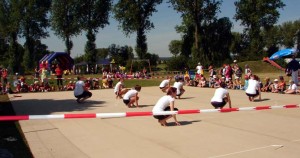 Höhepunkt der Veranstaltungen in den vier AGIL-Gemeinden und in Bechhofen waren aber die Wettkämpfe, die die örtlichen Teams hatten bestreiten müssen. Immer zu zehnt – fünf Männer und fünf Frauen – mussten unter dem Motto „Spiel, Spaß und Sieg“ teils humorvolle, teils aber auch wirklich anstrengende Wettkämpfe absolviert werden. Da gab es Disziplinen wie Torwandschießen, Massenseilhüpfen oder den Gummistiefellauf. Besonders viel Muskelkraft erforderte das „Biertischklettern“, das so manchem Teilnehmer den Schweiß auf die Stirn trieb.