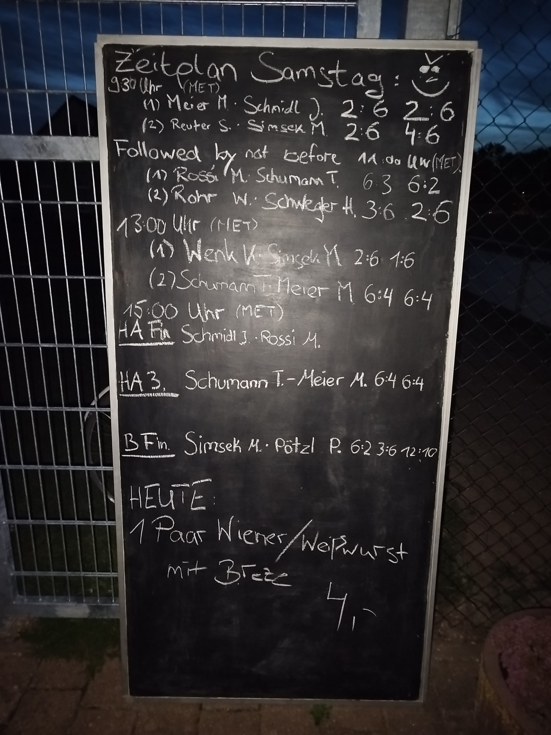 Sehenswertes Tennis und eine tolle Gemeinschaft bei richtig schönem spätsommerlichem Wetter prägten die Tennis-Vereinsmeisterschaften. Vor zahlreichen Zuschauern gaben alle Beteiligten noch einmal alles und zeigten jede Menge schöne Ballwechsel. Das Herrenfinale gewann Marco Rossi gegen Julian Schmidl mit 6:0/6:1. Danke an alle aktiven und die sportliche Leitung für die Organisation aller Spiele. Abgerundet wurde die Meisterschaft von einem gemütlichen Abend mit kulinarischen Spezialitäten und Barbetrieb.